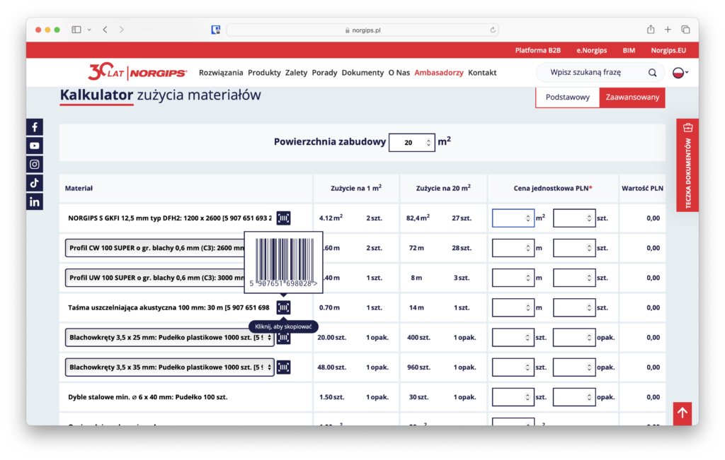 Moja rola w tym projekcie jest dość ogólna, głównie wsparcie i rozwój funkcjonalności. Tworzyłem między innymi Teczkę dokumentów w której użytkownik może trzymać pliki z serwisu oraz generować dokumenty. Tworzyłem kalkulatory zużycia materiałów dla systemów oraz wewnętrzne narzędzia do certyfikacji systemów.